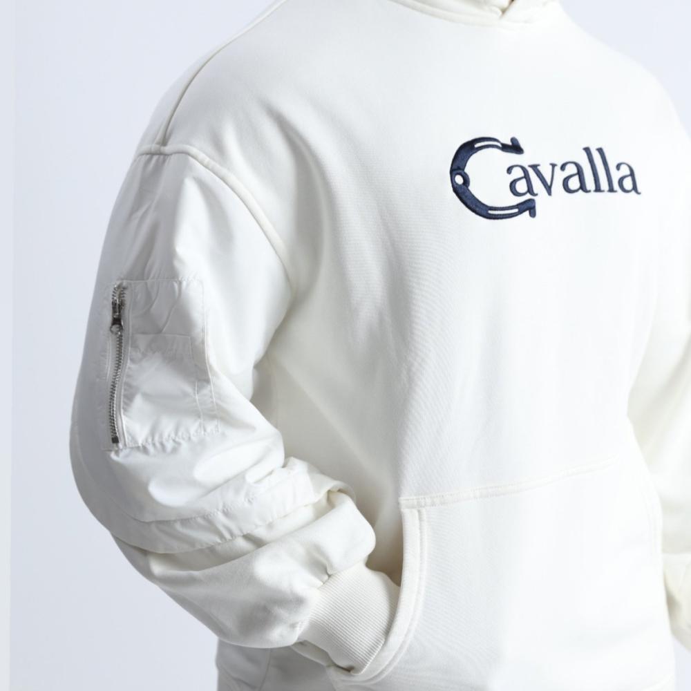 Off white & Blue hoodie with a nylon right sleeve